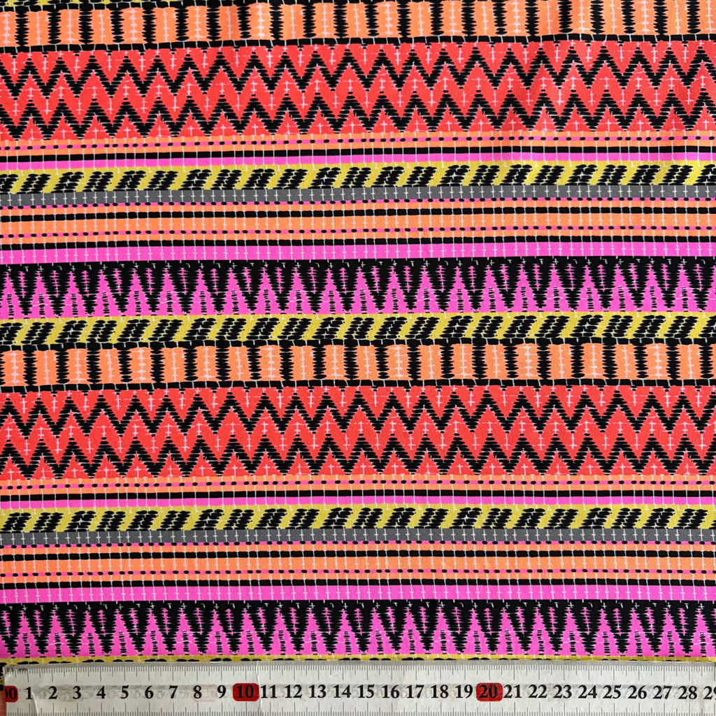 Multicoloured Pink Orange & Yellow Zig Zag and Stripe Graphic Lycra Fabric - 1m