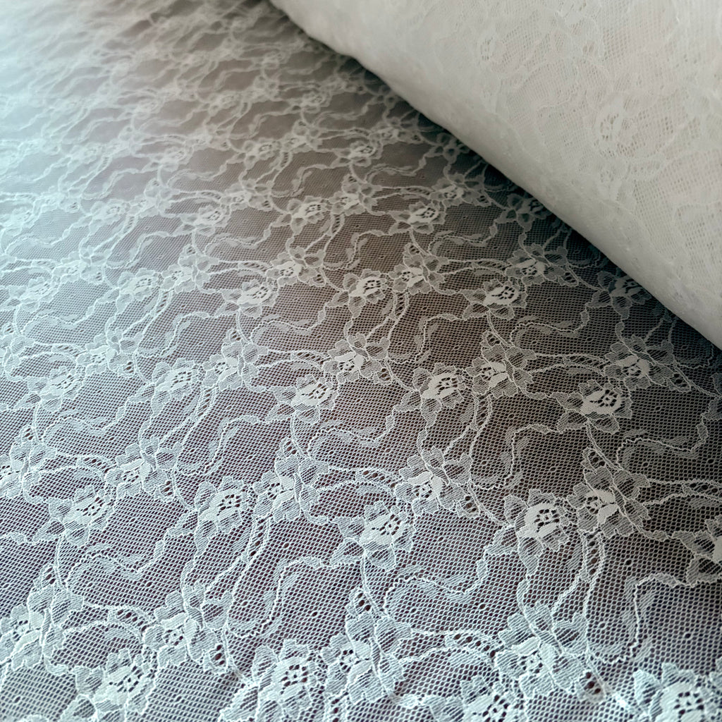 Expertly crafted with a gorgeous beige champagne colour and delicate floral allover lace, this 140cm wide fabric is perfect for the lingerie and outerwear industry. Its stretchy composition makes it an ideal  choice for both comfort and style.