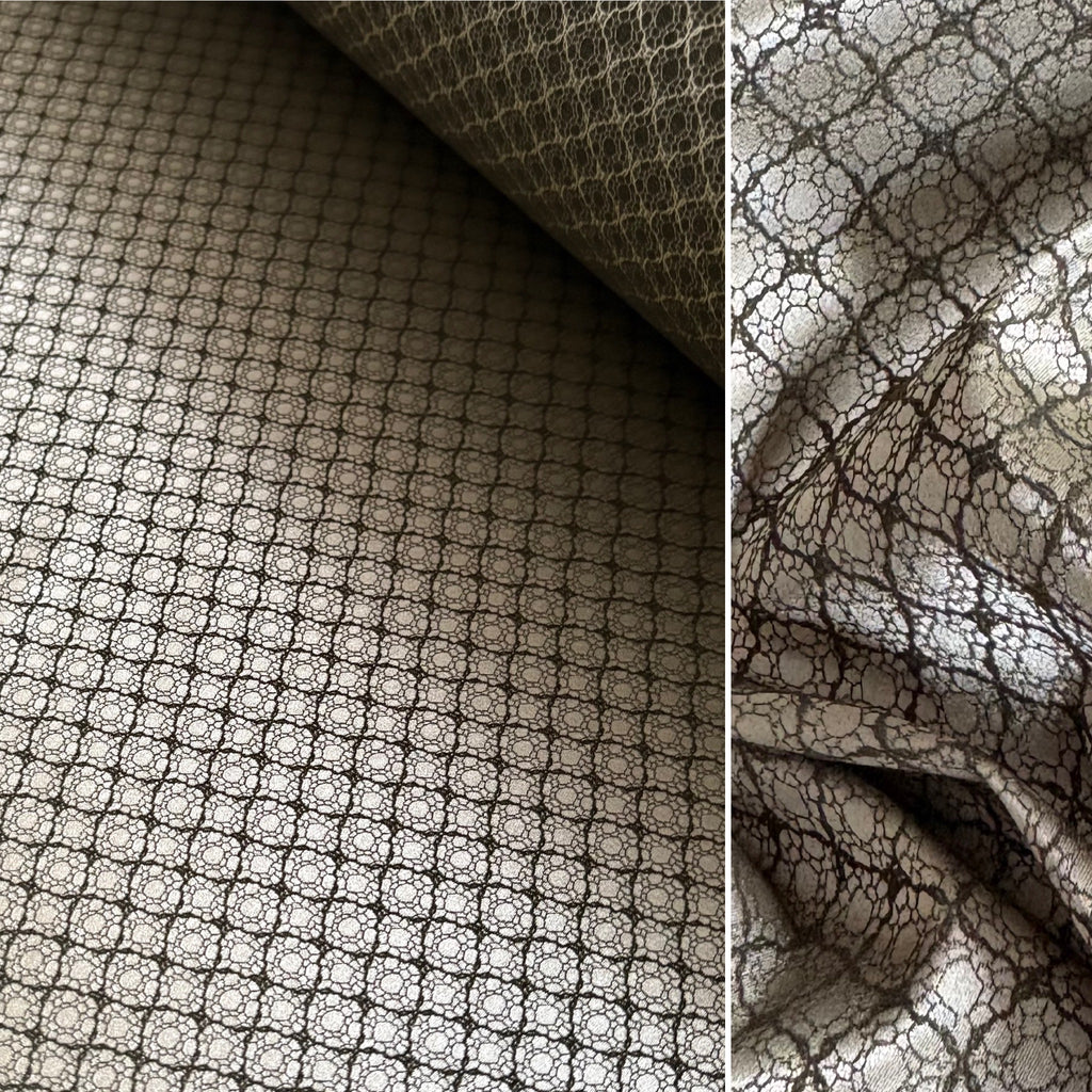 A luxurious Italian Jacquard print stretch satin fabric in many colours / patterns. Peacock floral, Diamond tiled and Spotty. Perfect for lingerie and nightwear